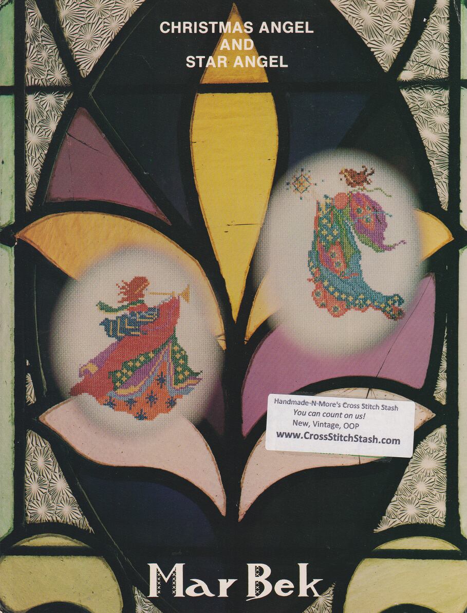 MarBekのAngelシリーズの一冊で、クリスマスの天使と星の天使の二つの図案が掲載されています。完成作品はカラーで表紙に掲載されており、チャートは二つ折りの中に、黒と赤のカラーで掲載されています。DMCの色番号がついています。