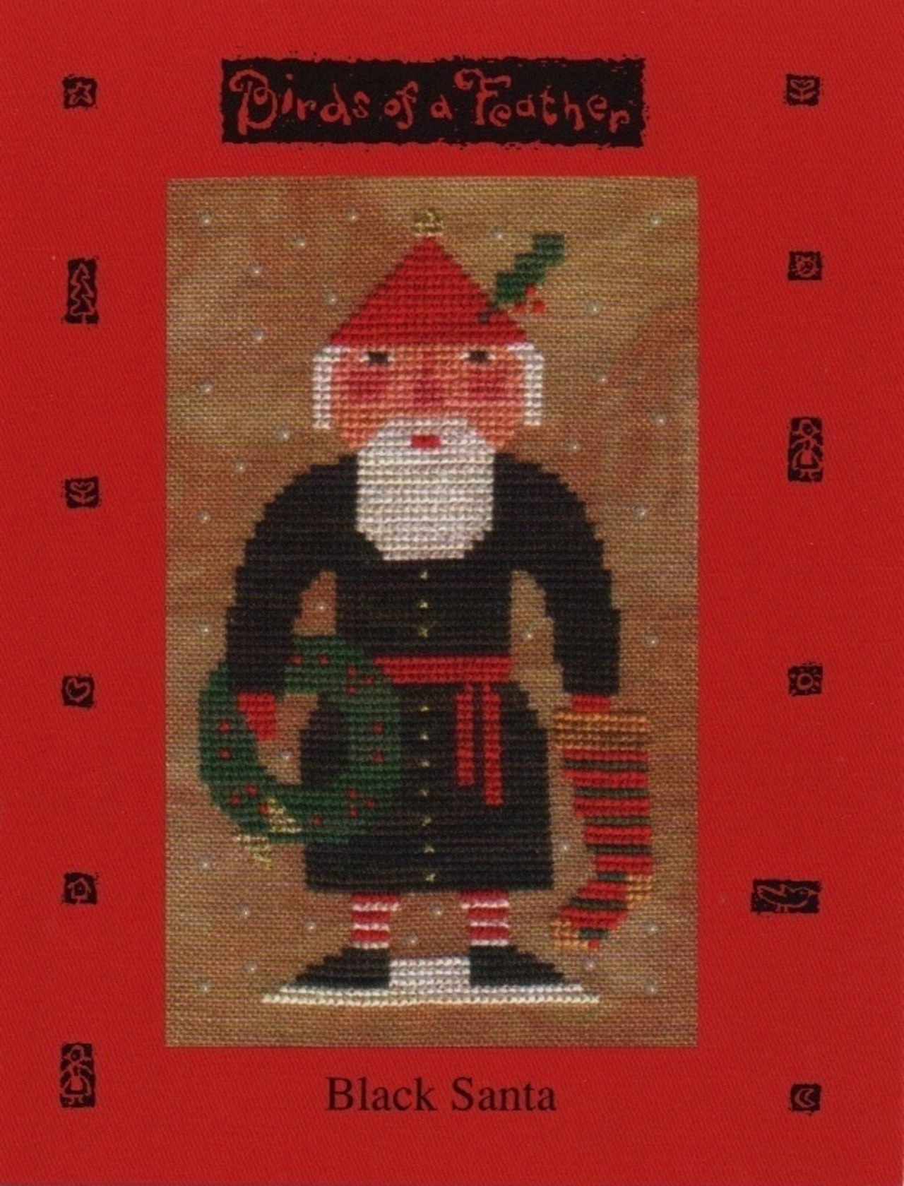 Birds of a Featherのサンタシリーズ。リースと靴下を携えたかっこいいブラックサンタのデザインです。