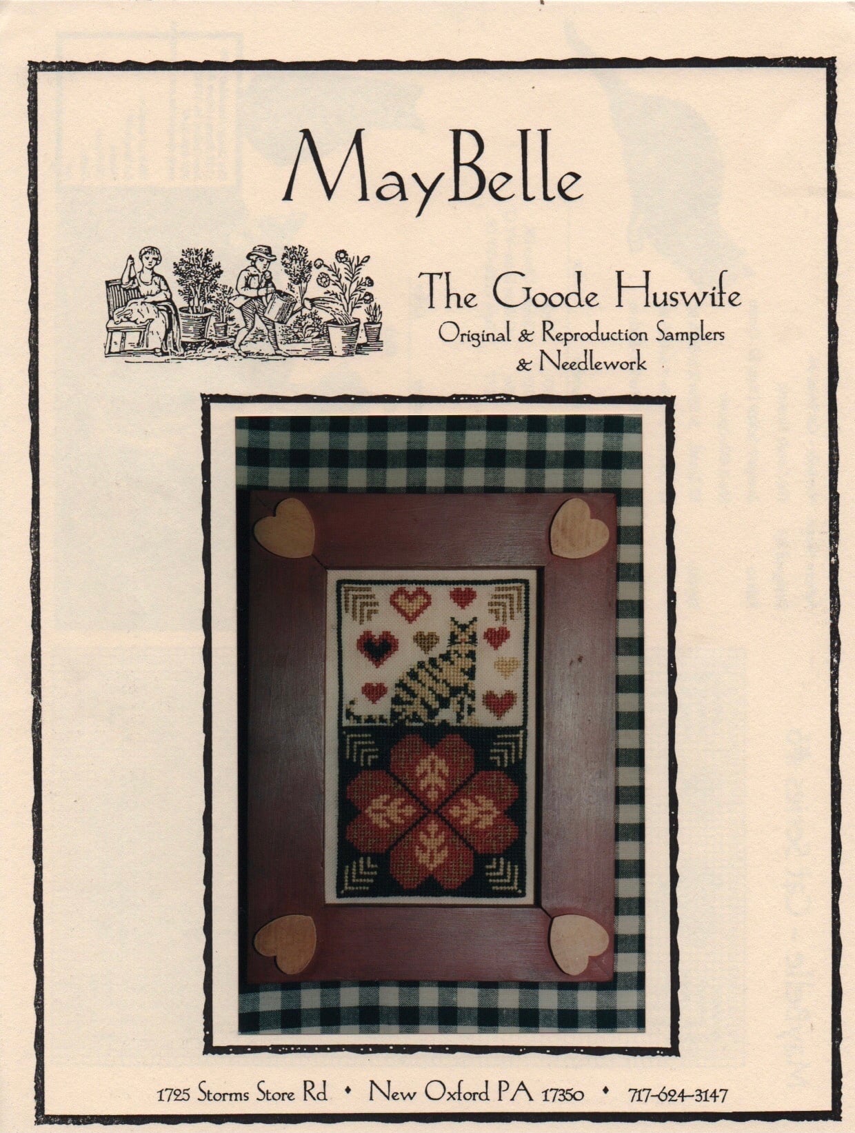 猫ちゃんとハート、お花という可愛らしいモチーフがあしらわれたサンプラーの図案です。