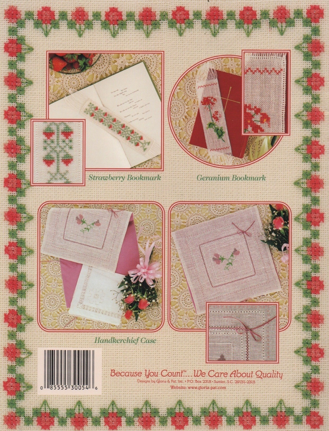 Ginnie Thompsonによるクロスステッチ図案集。ブックマークを中心に、ニードルケース、ハンカチケースなどの図案が多数掲載。いずれも草花をモチーフのデザインで、可憐でキュートです。糸の色番号指定あり。