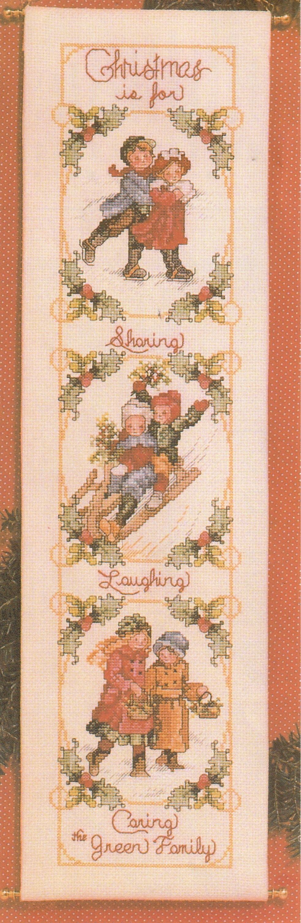 ヴィクトリアン・スタイルで描かれた、子供たちの冬を楽しむ3つのシーンをベルプル仕立てに楽しむ愛らしい図案です。DMCの色番号つき。ステッチカウント66×287。